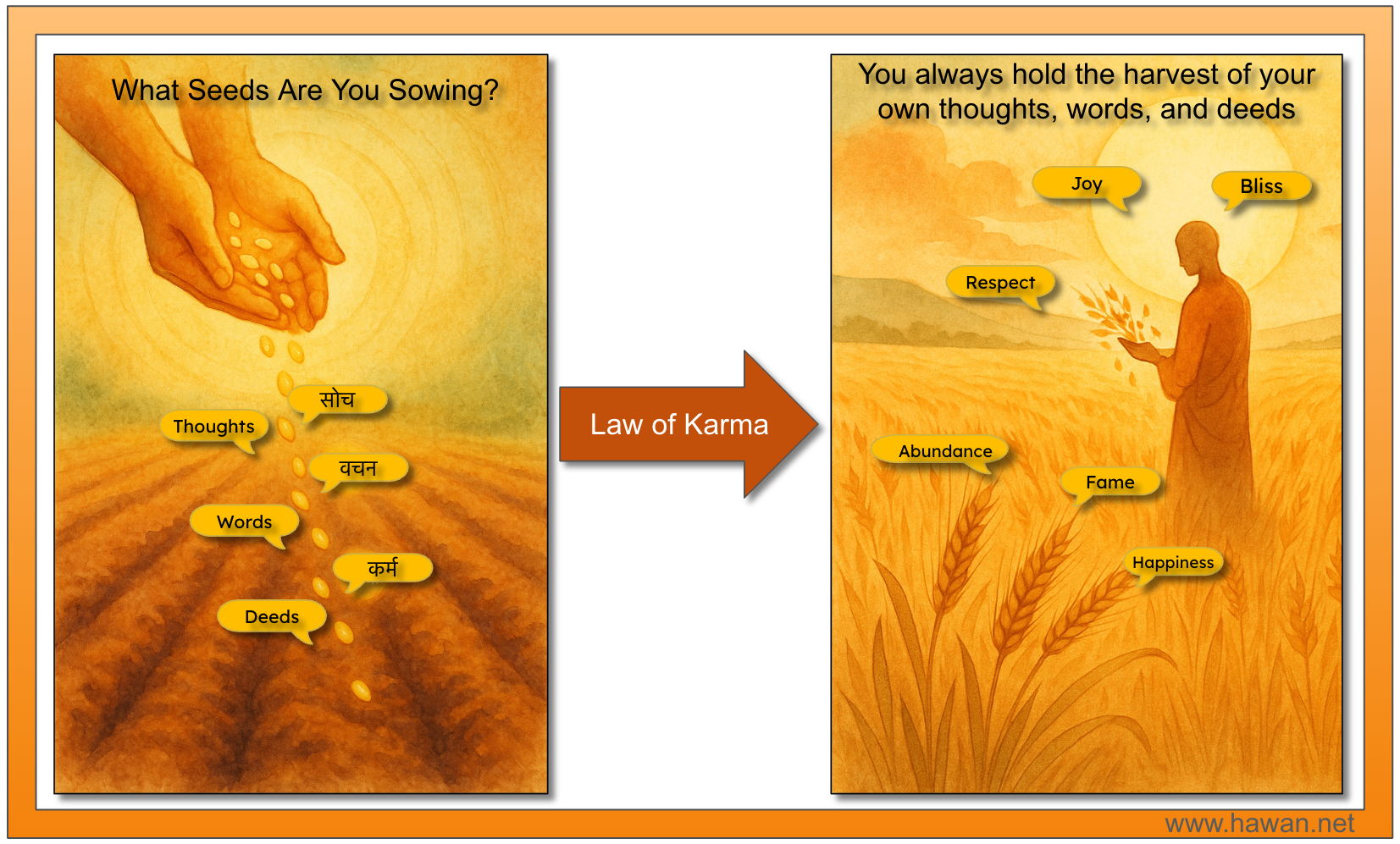 - When reflecting on Karma, notice the invisible law at work — how good intentions bring good outcomes, and how our choices ripple outward.